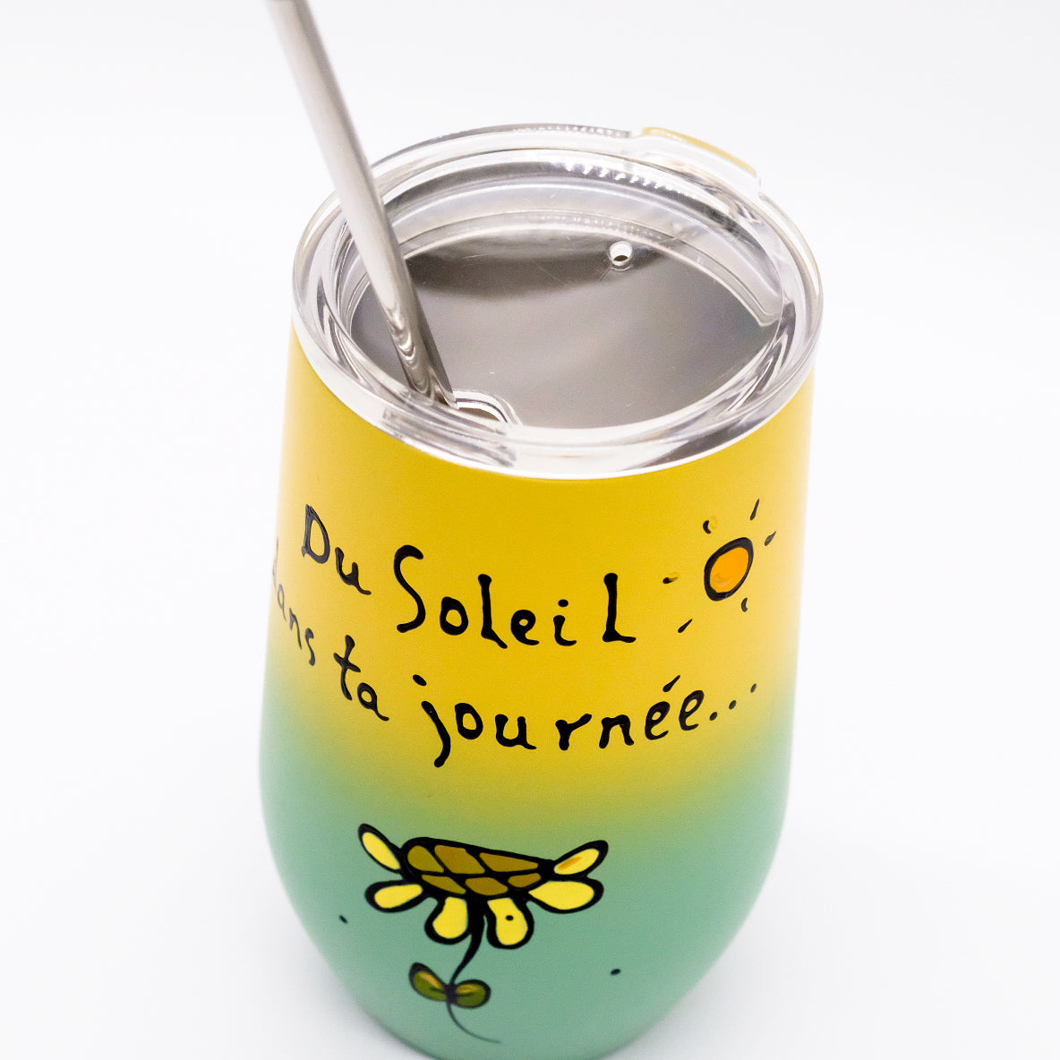 Discover a thin stainless steel tumbler, created exclusively by an artist from Bas-Saint-Laurent. Suzan, passionate and meticulous, brings a touch of love to each of her creations, for a unique and authentic result.