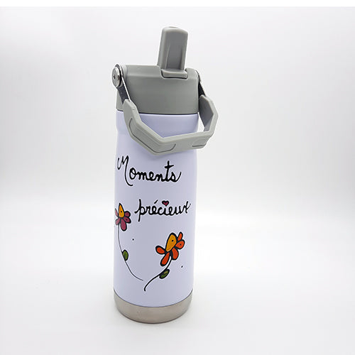 Discover this stainless steel bottle, created exclusively by an artist from Bas-Saint-Laurent. Suzan, passionate and meticulous, brings a touch of love to each of her creations, for a unique and authentic result.