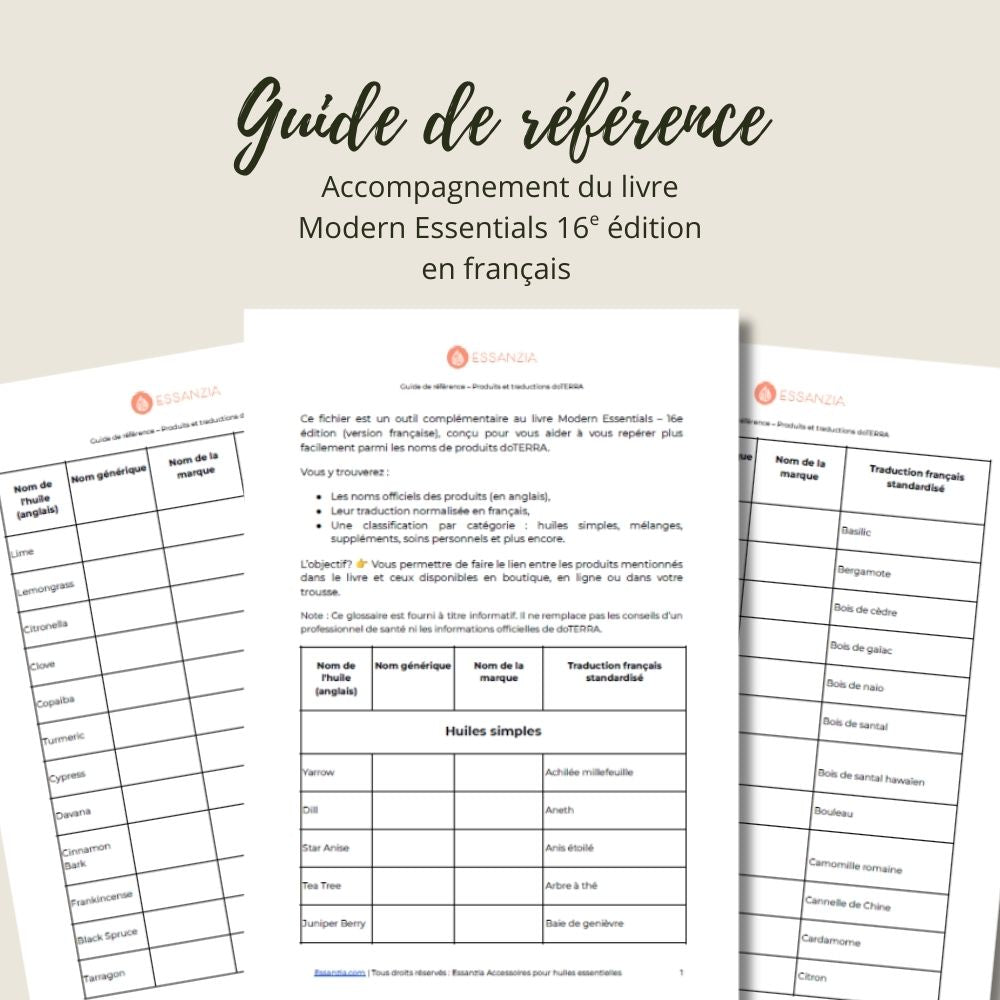 Vous avez en main le livre Modern Essentials – 16e édition ou vous explorez simplement l’univers des produits doTERRA? Ce guide de référence a été conçu pour vous aider à vous y retrouver plus facilement parmi les noms des produits en anglais et leur traduction normalisée en français.