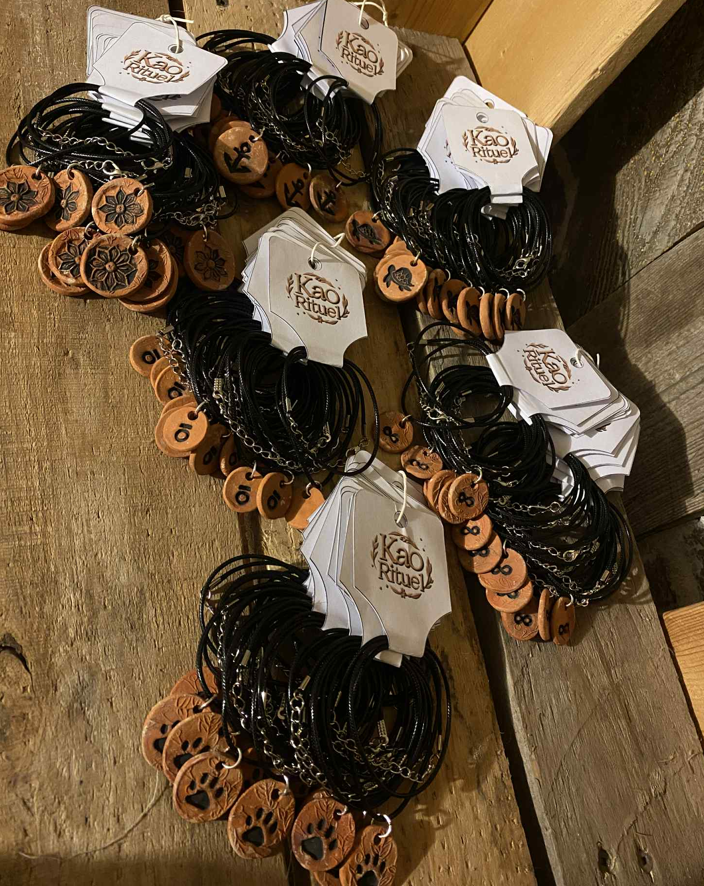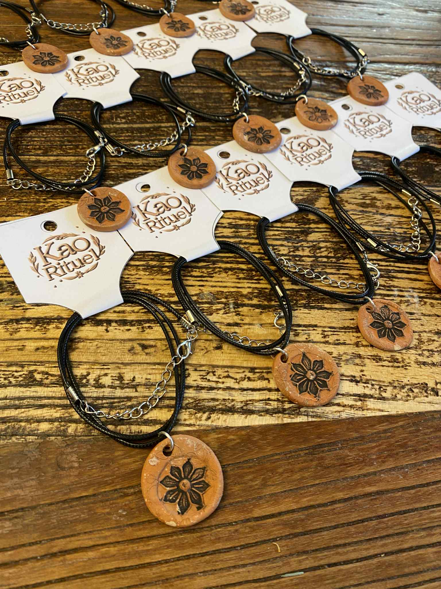 Chaque collier est une pièce unique, avec ses nuances et sa texture propres à la terre dont il est issu — un peu comme chaque personne qui le porte.