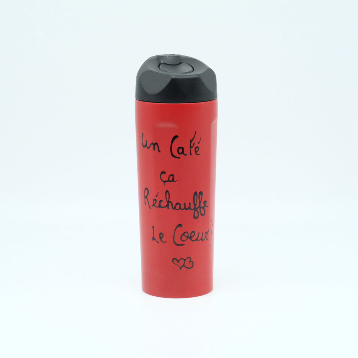 Discover the stainless steel thermos travel mug, created exclusively by an artist from Bas St-Laurent. Suzan, passionate and meticulous, brings a touch of love to each of her creations, for a unique and authentic result.