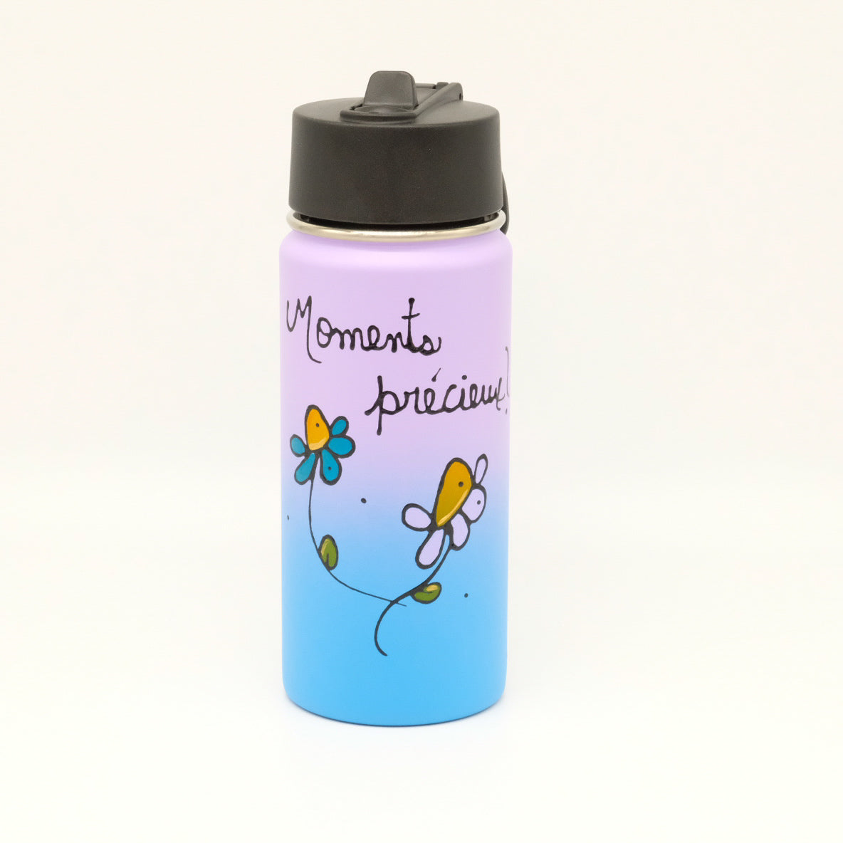 Offrez-vous une pièce unique et pratique pour vos sorties en plein air, vos séances de sport ou votre vie quotidienne. Commandez dès maintenant cette gourde réalisé avec passion et expertise par une artiste locale.