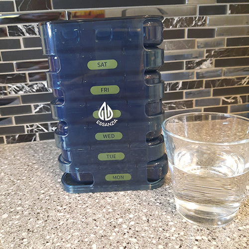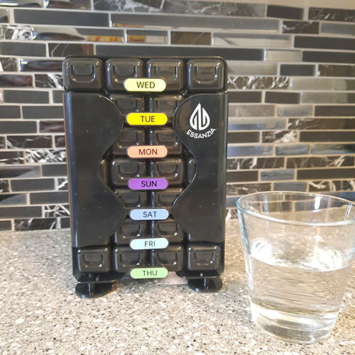 Optimisez l'espace de votre comptoir de cuisine tout en ayant vos vitamines quotidiennes à portée de main grâce à notre Pilulier Vertical Hebdomadaire Économiseur d'Espace.