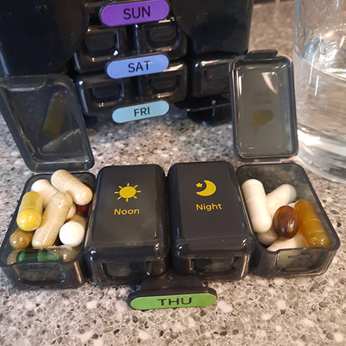 - Large capacité : Chaque case offre une grande capacité pour les amoureux des vitamines et suppléments.
